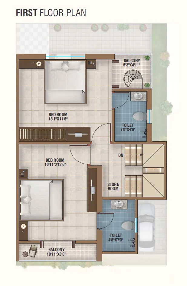 Interior wall with good quality plaster and exterior wall finish as per architect’s design.