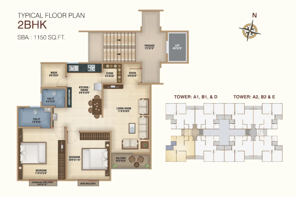 2BHK Typical Floor Plan