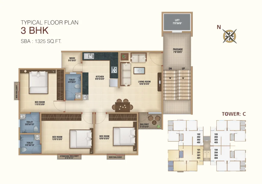 3BHK Typical Floor Plan