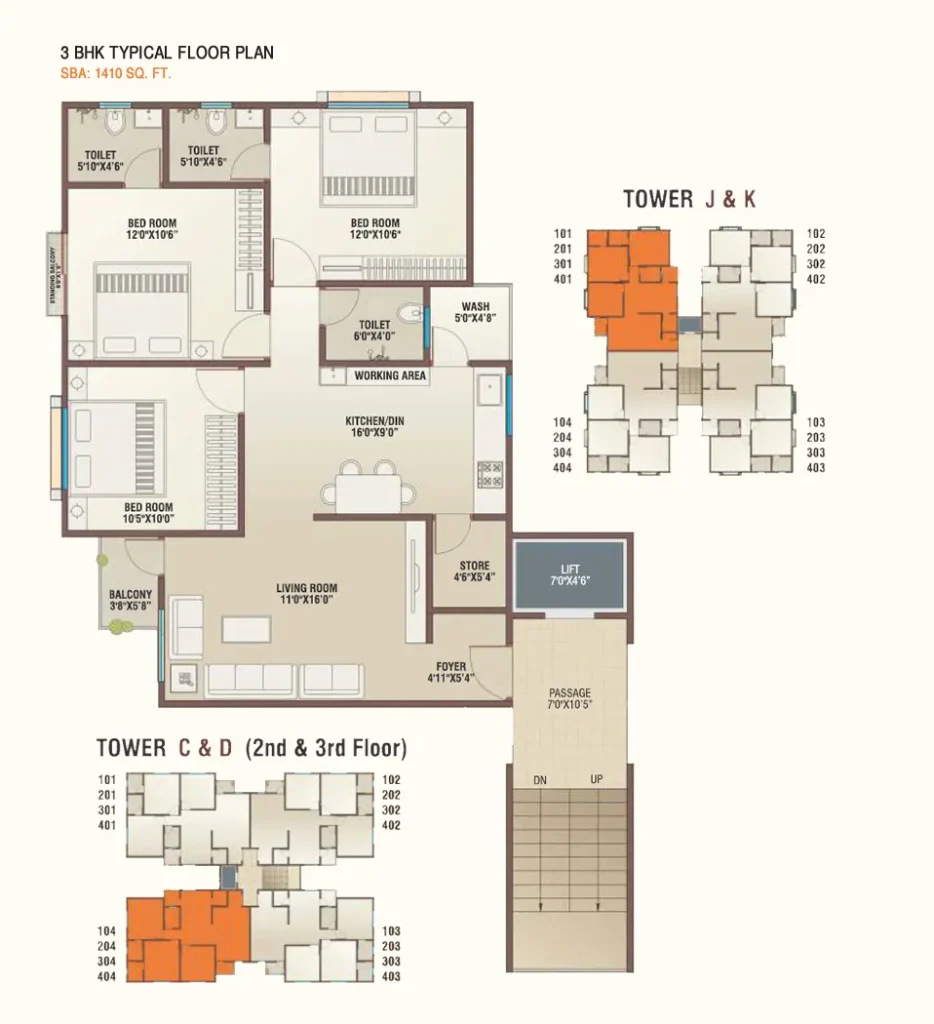Concealed copper wiring with Anchor/Clipcell or equivalent brand modular switches. A.C. plug point in the master bedroom and TV and phone point in the living room. Adequate light points and plug points in all rooms