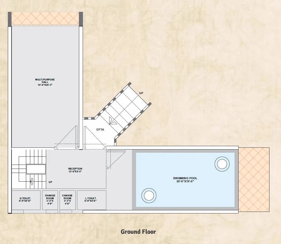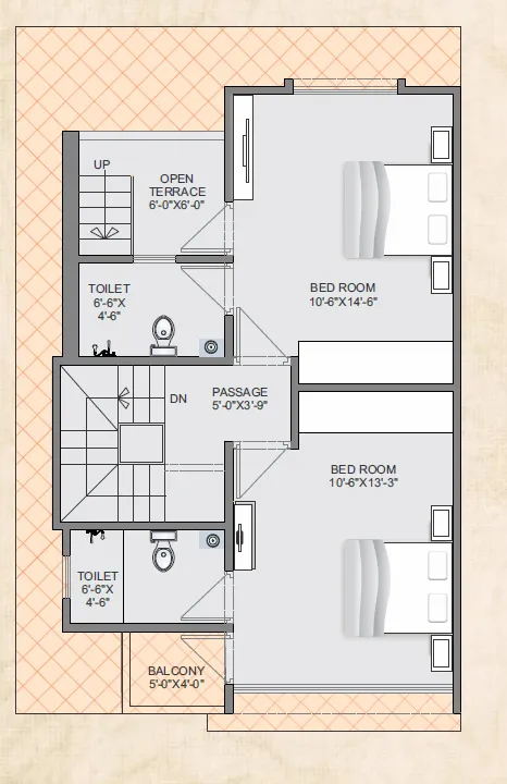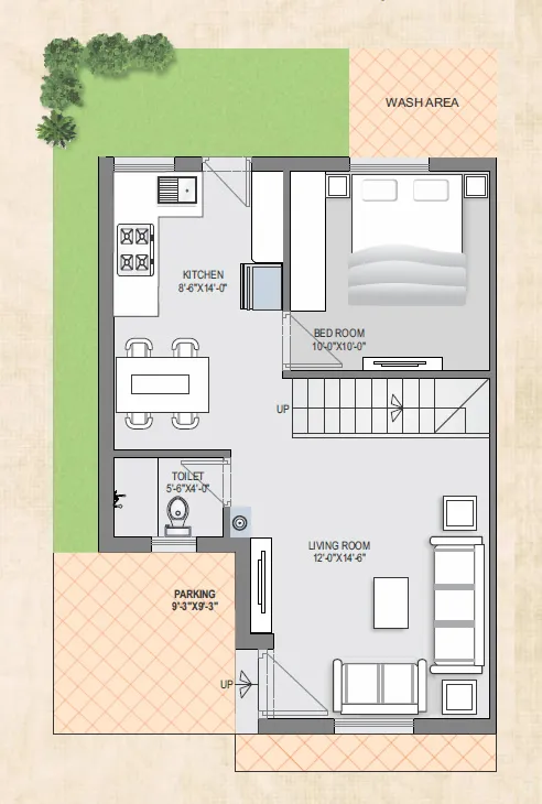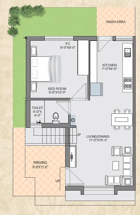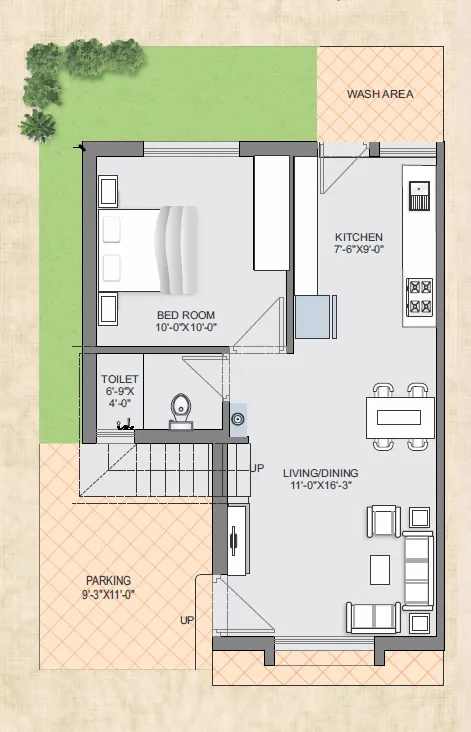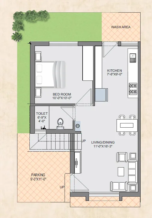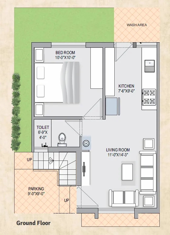 Type E - Minimum Plot Area: 675 Sq. Ft. • Built-Up Area: 1225 Sq. Ft.