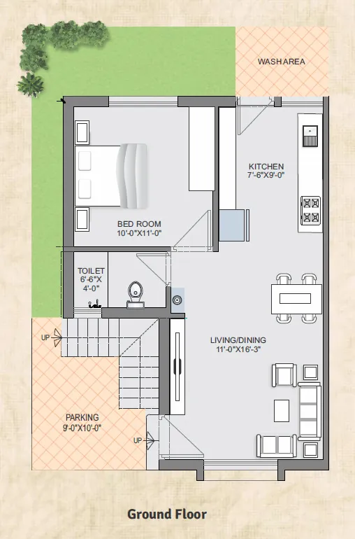 Type A : Minimum Plot Area: 660 Sq. Ft. • Built-Up Area: 1115 Sq. Ft.