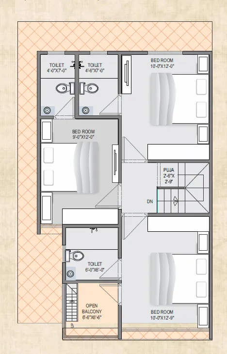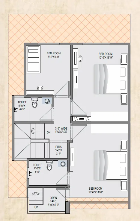 Type F - Minimum Plot Area: 760 Sq. Ft. • Built-Up Area: 1300 Sq. Ft.